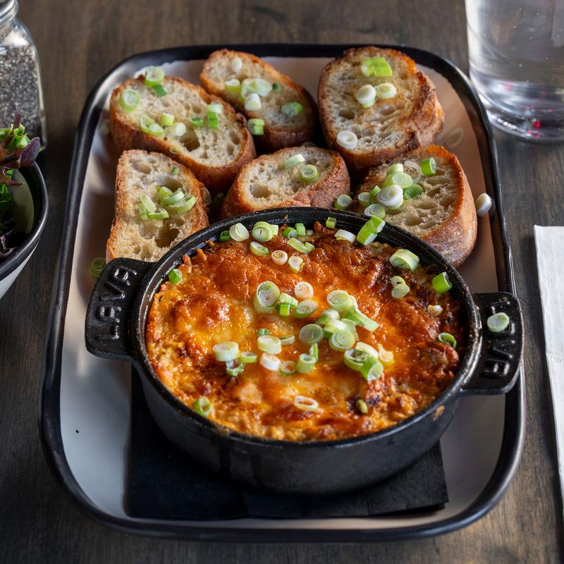 What gets better than bacon. ranch, chicken, cream cheese, cheddar made into a hot melty dip? Served with crostini! Yummy! Personal size