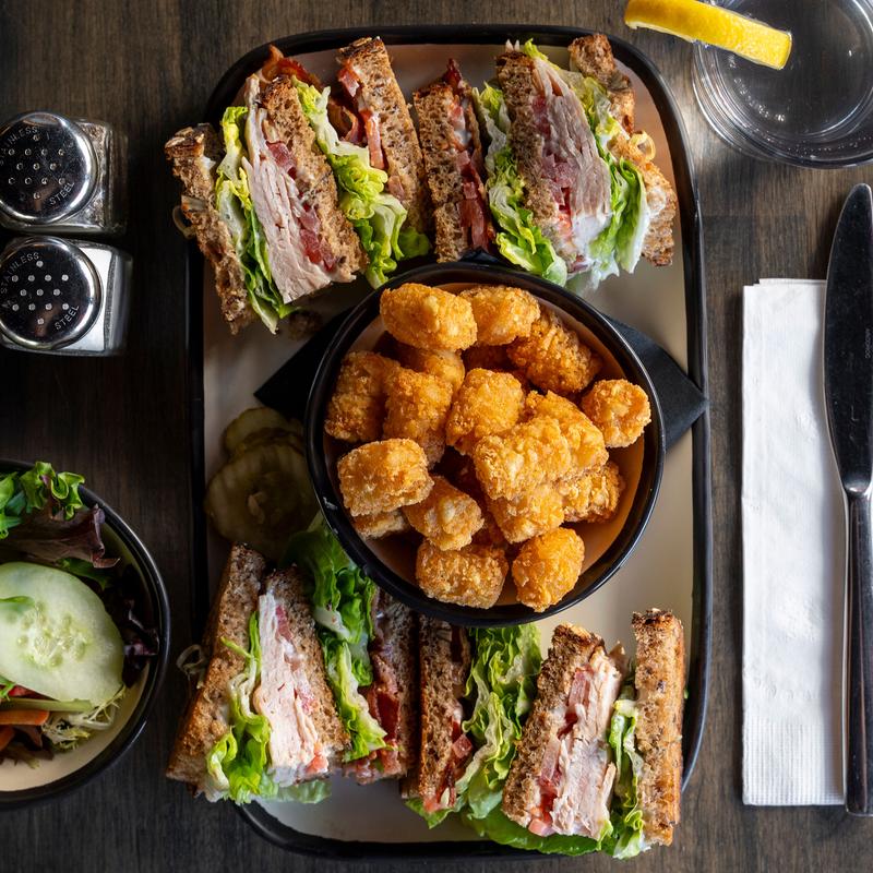 Three layers of lettuce, tomato, bacon, and turkey. Served on toasted Grand Central wheat bread with mayo. (Gluten free white bread is available)