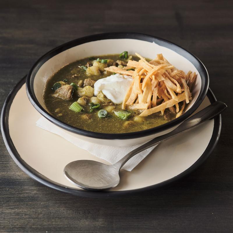 Poblano chiles, pork shoulder, hominy topped with sour cream and green onion. | $7.50 Cup, $13.50 Bowl