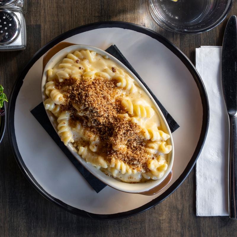 Pasta and house made cheddar sauce with breadcrumbs baked until golden brown. (Not served with fries or veggies)